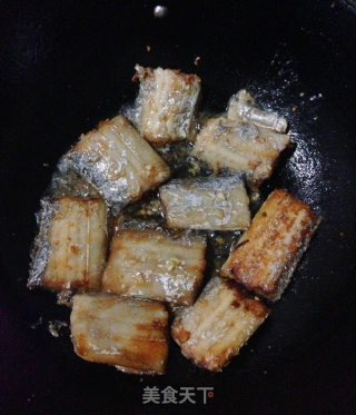 腌鱼的汤汁里加老抽1勺、醋2勺、糖20g兑成碗汁;