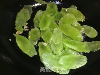 老姜和蒜末儿炒香后,倒入切好的莴笋片,记住火不要太大哦。。