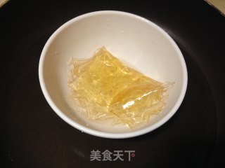 吉利丁片置碗中,加入1大勺水(约15g),隔水加热,融化后将碗取出,放置一边待凉备用