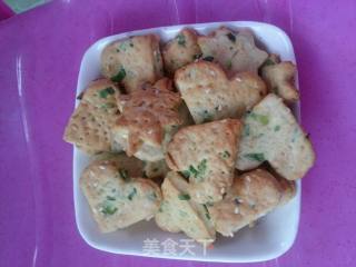 “ 直从上次做圣诞饼干后女儿总是说想再吃饼干,心想那就试做各种饼干给他们吃吧。呵呵,让他们高兴高兴。今天就做这款低糖的葱香饼干吧! ”