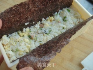 由于炒饭还是热的,所以要随吃随做,不然热炒饭会把紫菜变软,影响口感。