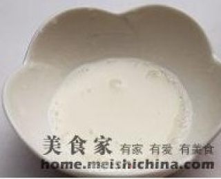 取一豆腐皮,用湿布正反面擦下,使之变软,放上适量馅,如图包起来,沾点面粉水固定,以此类推。