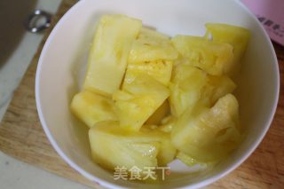 取三分之二菠萝块到搅拌机里搅拌成菠萝汁