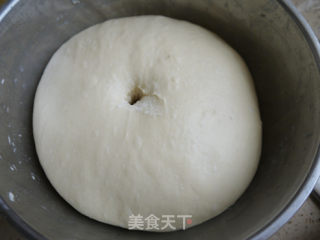 再次滚圆,烤盘里摆放好,进行二次发酵轻按表面不回缩,不涂蛋液180度,中层,15分钟,上色后加盖锡纸