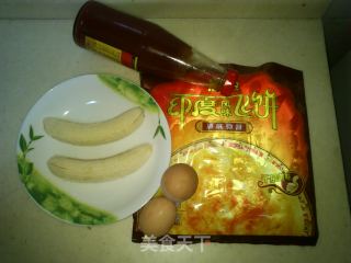 在飞饼上均匀的涂上番茄酱并加上香蕉。就可以吃了!
