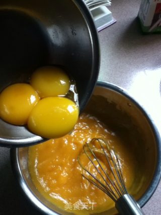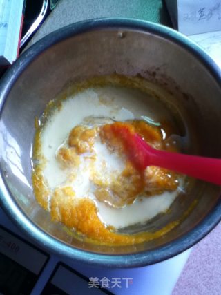 将拌好的南瓜蛋黄糊放着。接下来打发蛋清。