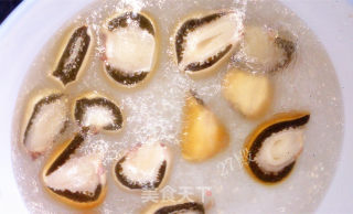 用汤煮竹荪蛋4~5分钟,用清水漂3~4次,切片,或者把竹荪蛋切成莲花型,备用。