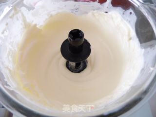 最后打发成软性发泡,就是如图拉起打蛋器有一个弯弯的角