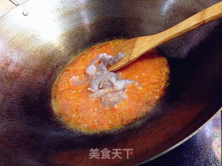 炒锅中放入适量的橄榄油,烧制五成热放入番茄内瓤,小火熬酱