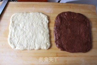分出一半面团来,另外一半面团中加入可可粉,揉匀。