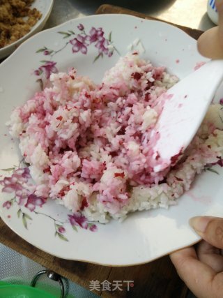 煮熟的大米糯米饭,加入弄碎的鲜杨梅