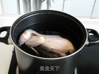 在广东吃白切鸡时,可能大多数是以姜、葱配制的调料佐餐,吃起来比较清淡,胖子的老婆是正宗的四川人,无辣不欢,所以胖子配置的蘸料加入了大量的辣椒油和麻油,蘸食白切鸡也是别有风味。 ”