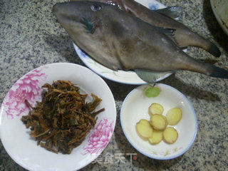 材料:橡皮鱼、梅干菜(已洗净)、姜片