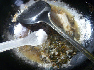 接着,合入已洗净的梅干菜,加适量的料酒。
