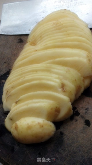 土豆斜着切片,尽量切薄,斜着切片,土豆丝比较长;