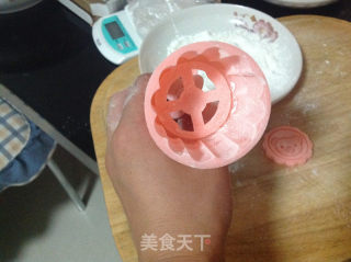 把月饼模里面一圈都抹上手粉,当然单片的盖子也需要上粉
