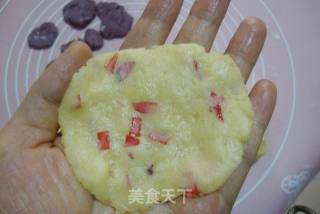 用1勺半蓝莓酱,加点植物油和适量面粉和成紫面团。