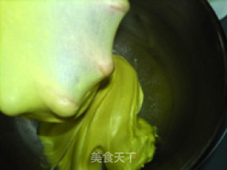 最后的芒果冰激凌,再做一个面包。既然是把冰激凌当奶油用,又正好还有一点酥粒面团,索性就按孟老师的鲜奶油面包做成辫子酥粒面包。之前那个芒果冰激凌花环面包状态不错,这个辫子想必也不会太差劲。