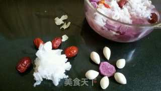 百合洗净,白果去壳,银耳掰成小朵,大枣去核,准备好