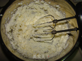 把蛋黄先用打蛋器打至浓稠,然后慢慢加入糖水,边加边不停搅打。