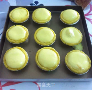 把蛋挞液倒入蛋挞皮八分满,送去预热好温度的电烤箱,上火190度,下火230度,烘烤20分钟,出炉,趁热吃噢,特别嫩,滑