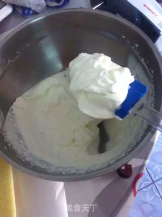 加几滴柠檬汁进蛋清中,白糖分三次加入打发蛋清,打发至湿性状态
