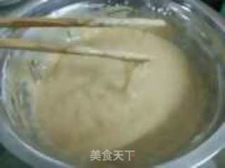 把红糖加入开水搅拌至融化 然后面粉加入泡打粉 搅拌均匀 倒入放凉的红糖水 搅拌至无颗粒状