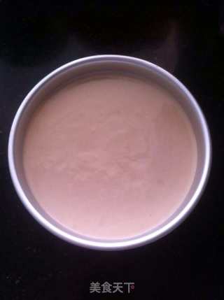 把蛋糕中的一片铺在模具底下,倒入巧克力慕斯液,放入冰箱冷藏4小时以上