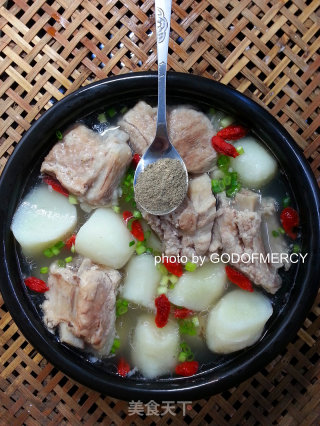 (2)往排骨里加入几滴白醋,可以促使排骨中的钙质释放出来后,溶入到汤汁中里,使山药排骨汤味道更加鲜美。