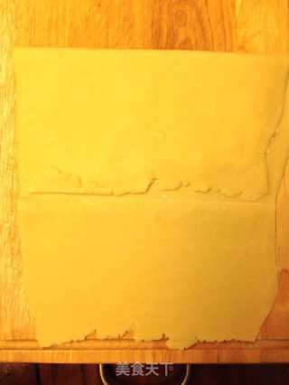 将面团擀成薄片,之后三分之一折后再擀,往复三次
