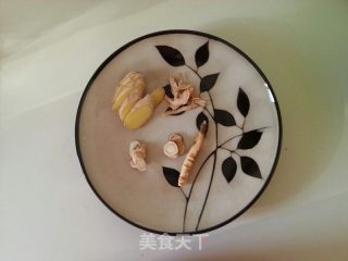准备老姜5片、黄芪3片、甘草2片、当归6片、沙参一小根。