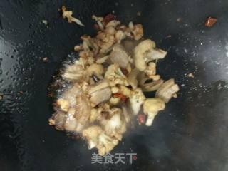五花肉提前淖水,切薄片,花菜洗干净,用手掰小块。
