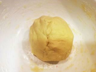 从冰箱里拿出面团,擀压成型后放入模具中,放入预热好的烤箱中,第一次烤160度15分钟