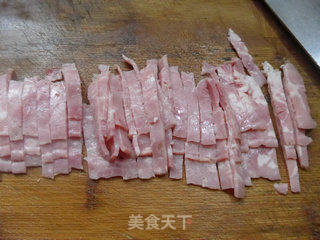 烧锅倒油烧热,下入切好的培根翻炒一下。