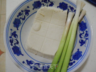 青蒜垫底,摆上煎好的豆腐,淋上蚝油即成