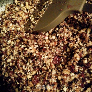 锅中放入色拉油【猪油更香】,油开后关火,80度左右放入核桃,花生,芝麻,白糖翻炒,最后放入玫瑰糖翻炒