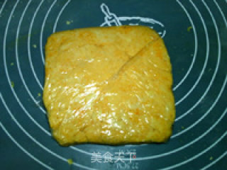 “ 冷冻南瓜是生还是熟呢?看那图片的样子,有点像熟南瓜的颜色。微波解冻过筛成泥。问题又来了。南瓜含有水分,司康中的牛奶难道不需要相应地削减用量吗?不过,看那图片中的南瓜泥,似乎水分并不太多的样子。好吧,就把南瓜泥尽量地蒸发掉水分,再用足原方牛奶的分量。 好像水分还是多了一点,面团略有些稀软粘手,但也还算可以小心拿捏。烘烤之后,通体金黄,这颜色真是出乎意料。。。。 ”
