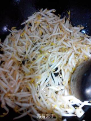 下入绿豆芽大火煸炒2-3分钟,下入盐,酱油,淋少许醋,翻炒均匀