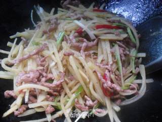 热锅放油,放牛肉丝,加入姜丝煸炒变色后盛出.