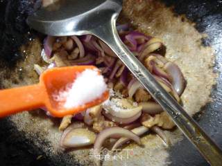 然后,合入切好的紫洋葱翻炒翻炒至断生。