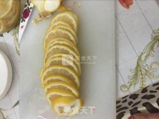 用盐巴在柠檬表皮上使劲地搓一分钟左右,这样能让柠檬表面的保鲜剂和蜡去掉,将柠檬切片,不要太厚,也不要太薄,太厚柠檬酸味不能充分流出,太薄会让柠檬汁流失浪费.