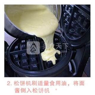 将松饼面酱倒入松饼机,在此之前要抹上少量的油