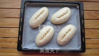 “ 发酵好的面包,中间剪开口,挤入厚厚的软化的黄油,表面刷上蛋液,再筛上厚厚的一层糖粉,开口处经过烘烤不仅又香又软,还很酥脆,非常受喜爱黄油的儿子的青睐。 ”