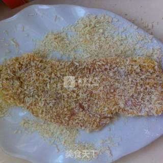 锅里放入适量的食用油,油温七成热的时候放入鸡排,炸至金黄色捞出