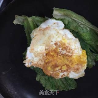 鸡蛋煎一个,生菜也放平底锅煎下;