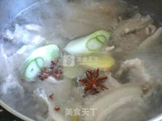 加入花椒、八角、葱、姜,小火炖15分钟。