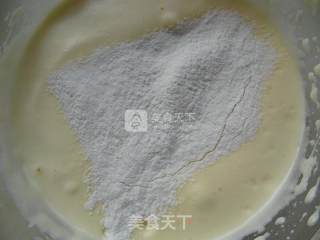 用电动打蛋器将蛋液打至浓稠状,提起打蛋头划圈,花纹不下沉;
