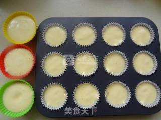 蛋糕糊在模具中八分满即可,撒入少许芝麻,放入提前预热好的烤箱内,中层180度烤制18分钟;