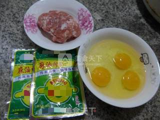食材:榨菜丝、肉末、鸡蛋(已打入碗中)