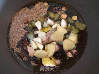 冷油放入全部干香料,小火2-3分钟慢慢爆出香料的香味。